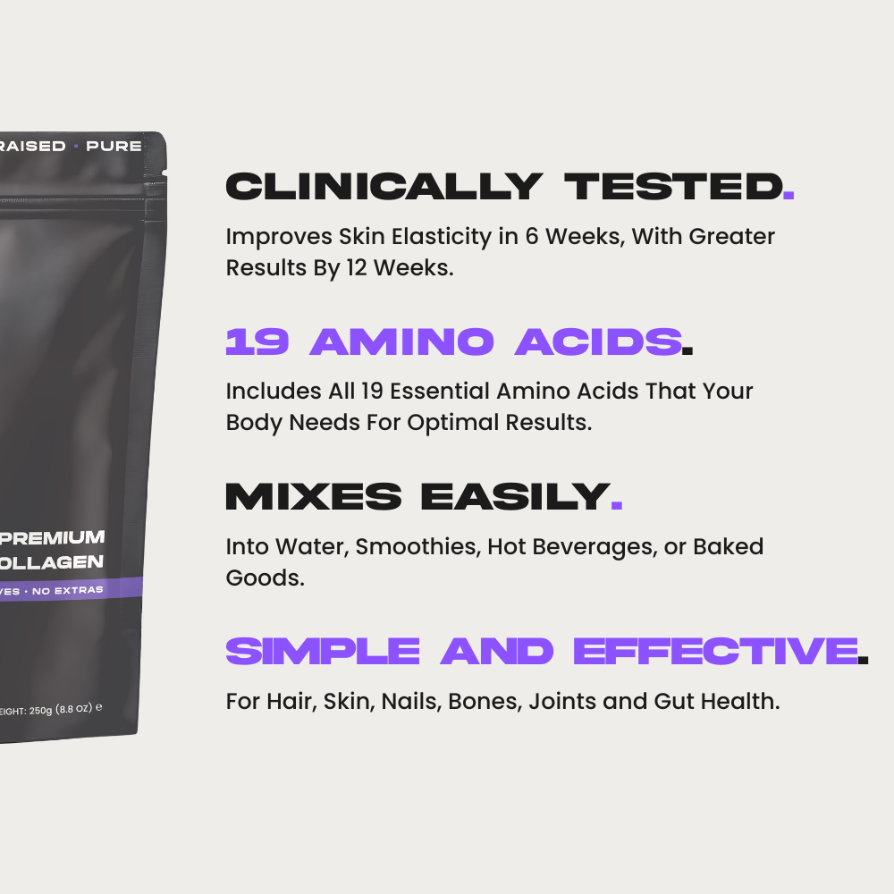 The cattle are grass fed, organic, and carefully processed into fine, hydrolysed peptides that mix smoothly and have a clean, neutral taste. If you have tried collagen that smells strong, clumps, or leaves a heavy texture, that is usually a quality issue. Ours is designed to integrate effortlessly into your routine.