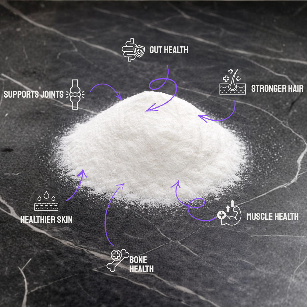 When you take hydrolysed collagen peptides, you’re giving your body highly usable amino acids (especially glycine + proline + hydroxyproline) that it can absorb and then allocate where it’s needed. Think of it like this: